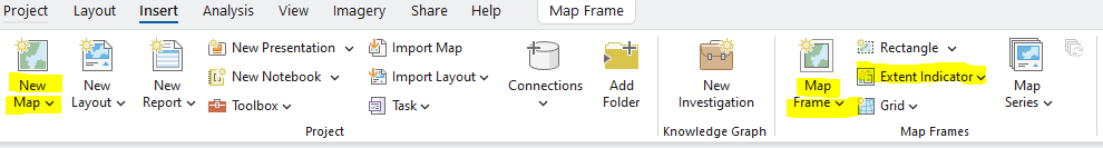 After selecting your layout, navigate to the ‘Insert’ tab on the top of your screen, and select ‘Map Frame’. This will give you an overview of all the maps you have created in your Arc Project, and will allow you to select one to add to your layout. We can now select the one created above, and add it to our layout by dragging a box in the spot where we wish to place it. You can then add elements such as leader lines, and separate scale bars if you feel it is appropriate.